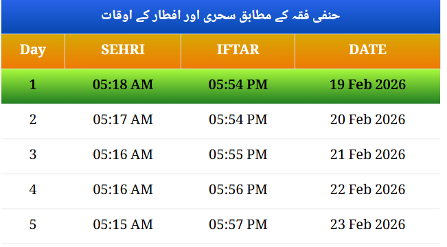(ویب ڈیسک): پاکستان میں چاند نظر آنے کے بعد پہلا روزہ آج جمعرات، 19 فروری 2026 کو رکھا گیا ہے۔