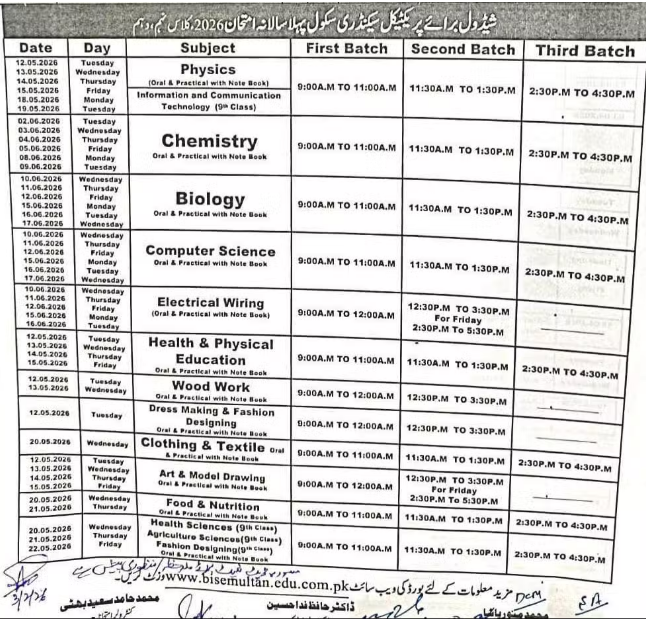 بورڈ کی جانب سے کلاس 10 کے پریکٹیکل امتحانات کا شیڈول بھی جاری کیا گیا ہے جو تحریری امتحانات کے بعد منعقد ہوں گے۔